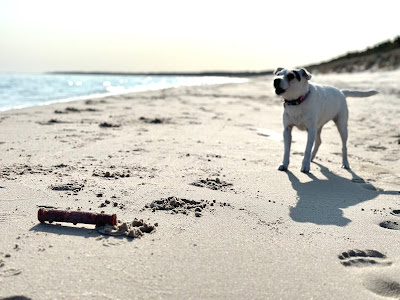 W przesyłce od Aquael, którą otrzymaliśmy do testów znajdowały się (patyk, piłka, dwa rodzaje kostek, szarpak). Oczywistym było dla mnie, że Maciek wybierze piłkę i tutaj zaskoczenia nie było. Śmiejemy się, że piłka, to jego mózg zewnętrzny, ma na ich punkcie obsesję. Tak tez było tym razem. Firma zadbała o to by każdy z psów miał swój zestaw zabawek, by mógł swobodnie wybrać, za co ogromnie dziękujemy. Zabawki jeździły z nami na plażę tam również zdały egzamin celująco.